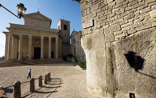 La Basilica di San Marino, in perfetto stile neoclassico con un pronato di colonne corinzie, risale al 1825, quando si decise di abbattere la precedente Pieve cinquecentesca. Una scelta avventata che cancellò uno dei primi monumenti cristiani in stile preromanico in Italia, probabilmente simile a quella ancora oggi ben conservata della vicina San Leo.